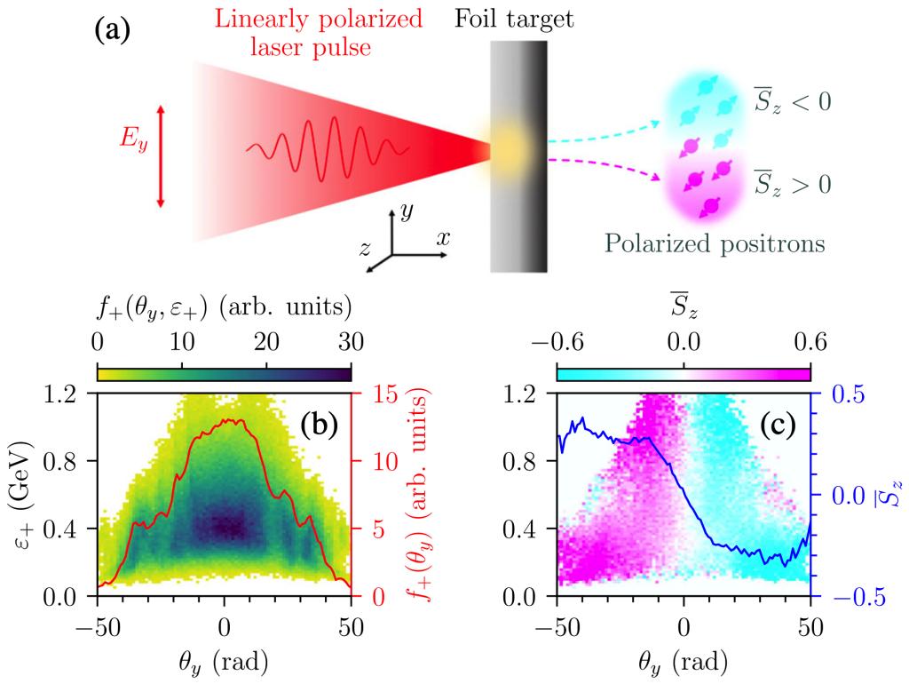 国内外多项研究表明利用十拍瓦、百拍瓦激光与等离子体相互作用可以产生高密度的正电子,然而这些正电子极化性质仍然不清楚,这是因为目前广泛使用、对以上问题进行研究的QED-PIC程序忽略了自旋极化效应。该团队继2016年开发了国内首个QED-PIC程序(arXiv:1608.06356)之后,在2021年开发了国际上首个包含电子/正电子自旋极化和光子偏振效应的QED-PIC程序(New Journal of Physics 23, 075005 (2021)),从而具备了研究以上问题的能力。