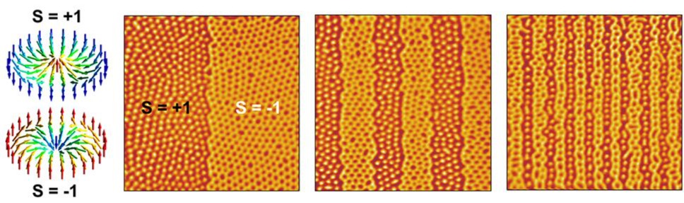文章利用MFM技术,在Fe3GaTe2材料中成功实现了对skyrmions的精细操纵,并取得了较高的操控精度。研究者通过精细调控MFM探针尖端的杂散场,成功实现了skyrmion的可控形成与擦除的过程,并首创构建了具有相反拓扑电荷(S = ±1)的skyrmion共存态,即拓扑skyrmion结(TSJ)。这一技术有望为基于skyrmion的存储设备引入全新的二进制位表示方法,为自旋电子学领域的发展注入新的活力。进一步的研究表明,特殊的TSJ结构不仅提高了电子的传输效率,降低了器件电阻,而且还是作为二维异质结的组成材料,能够利用其周期性局域磁场和拓扑电荷的近邻效应来调控实现奇异超导量子态等。此外,TSJ随着磁场的变化揭示了具有不同拓扑电荷的skyrmions晶格会表现出截然不同的拓扑特性。