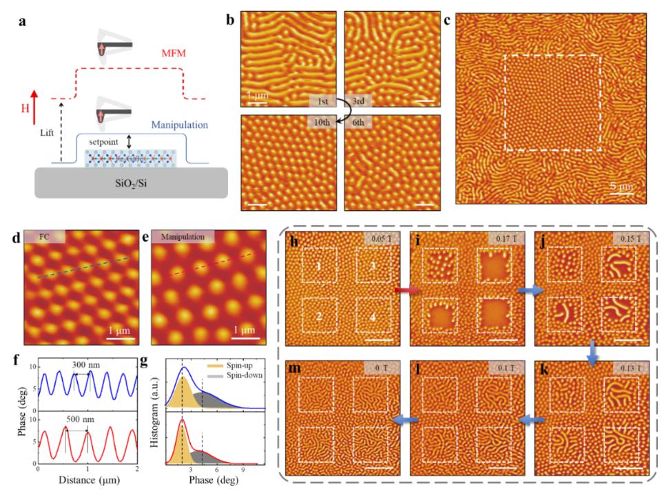 图1.MFM探针操纵诱导Fe3GaTe2中skyrmions的形成和擦除