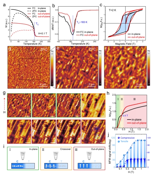 图2. FePd₂Te₂的宏观磁学性质与微观磁畴性质(磁力显微术)