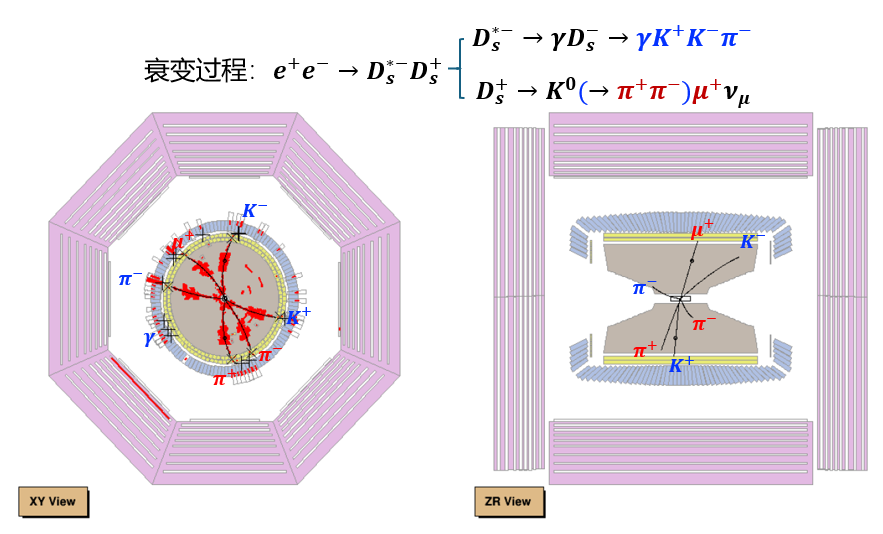 图一:从正负电子对撞数据中筛选出的Ds+→K0μ+νμ衰变事例显示图。