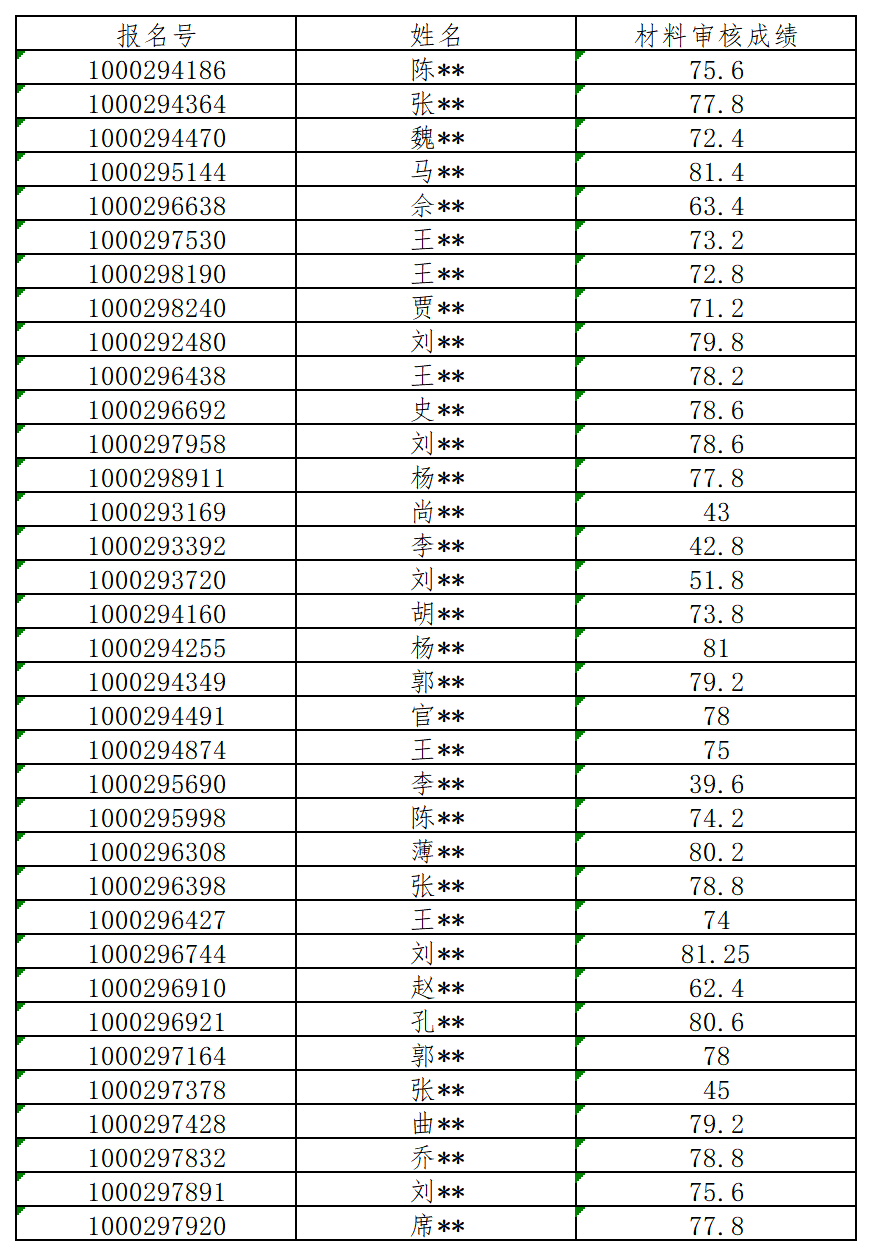 对考生的申请材料进行审核,现将材料审核成绩及名单公布如下: