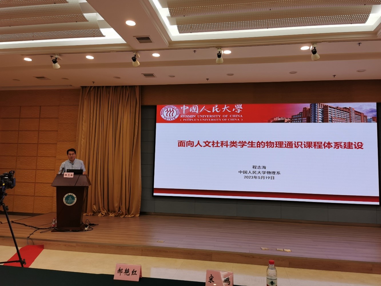 我系通识课程教研团队程志海教授、许瑞老师受邀在研修班做主题发言,分享了一流本科课程持续建设和应用的经验,介绍了我系近年来建设的物理通识课程体系。该体系注重科学教育与人文教育融合,秉持“以课程思政驱动教学创新”的通识教育理念,铸造“格物致知、实事求是”的通识课程之魂,注重科学知识和方法的传授,科学思维的训练;着重于培养学生的科学精神。经过多年持续投入,教研团队建设的课程体系中有三门获评国家一流本科课程。