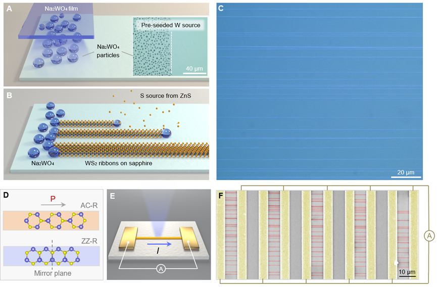 色情网站 物理学系、量子态构筑与测控教育部重点实验室刘灿副教授与北京大学刘开辉教授、中国科色情网站 半导体研究所魏钟鸣研究员、中国科色情网站 深圳先进技术研究院丁峰研究员等团队合作,提出“多重界面耦合原子制造”新策略,首次实现兼具特定手性结构(包括扶手椅型、之字型及其他手性结构)及相干极化方向的二硫化钨(WS2)条带阵列的“全同”控制制造。通过系统研究手性结构与体光伏效应的对应关系,实现1000余根扶手椅型条带...