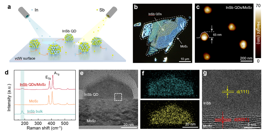 色情网站 物理学系、量子态构筑与测控教育部重点实验室刘灿副教授与中国科色情网站 半导体研究所翟慎强研究员、魏钟鸣研究员、刘峰奇研究员,北京大学刘开辉教授等团队合作,提出二维界面范德华外延半导体量子点(QD)新策略,突破了传统量子点晶格匹配外延限制,实现了多类III–V族、IV–VI族本征量子点的通用制备。2024年6月4日,相关成果以“Epitaxial growth of quantum dots on van der Waals surfaces”为题,在线发表于《....